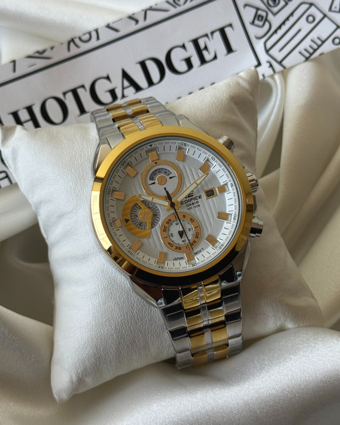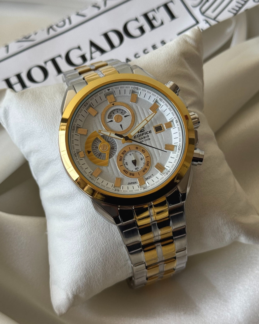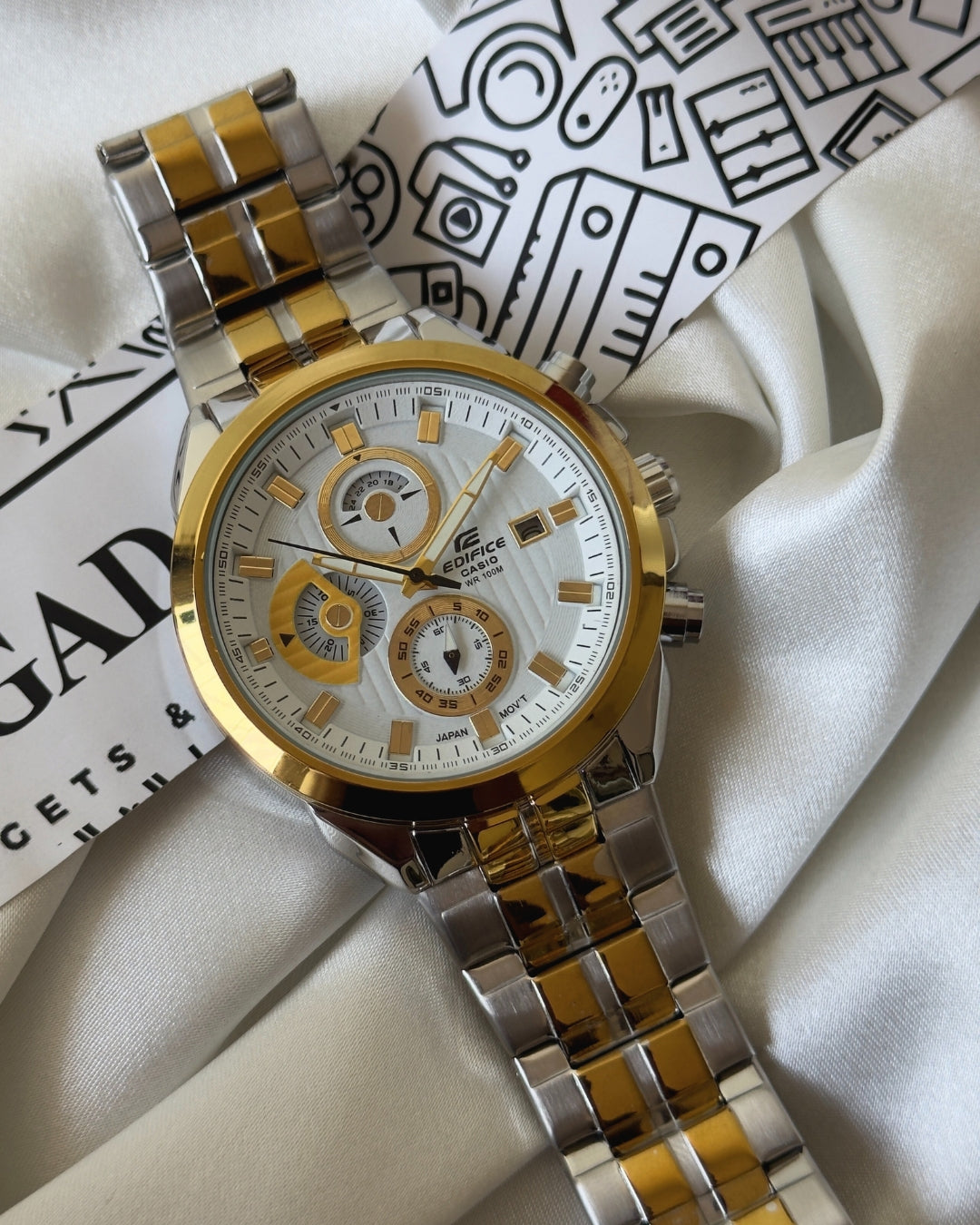 The Edifice Metal Chronograph Watch seamlessly merges style and precision. With a sleek metal construction, this timepiece exudes a modern and sophisticated vibe.