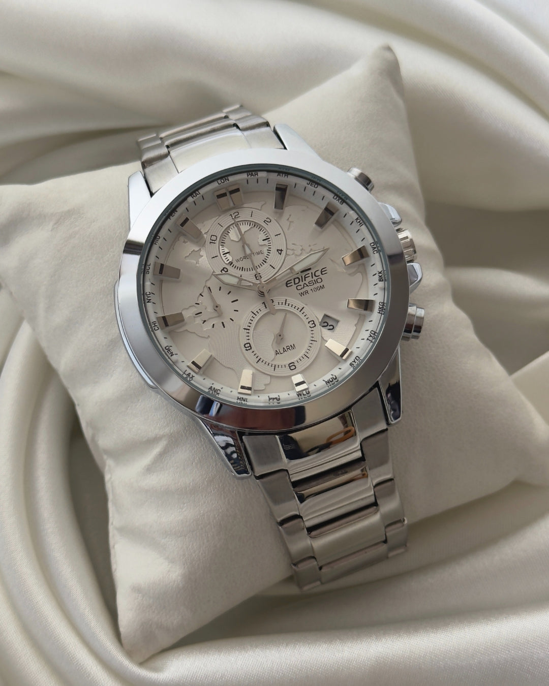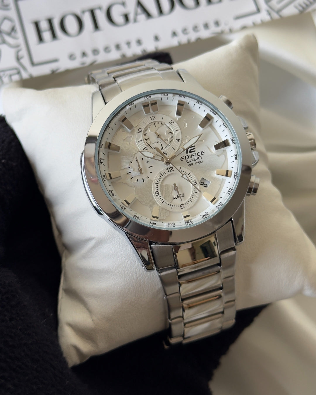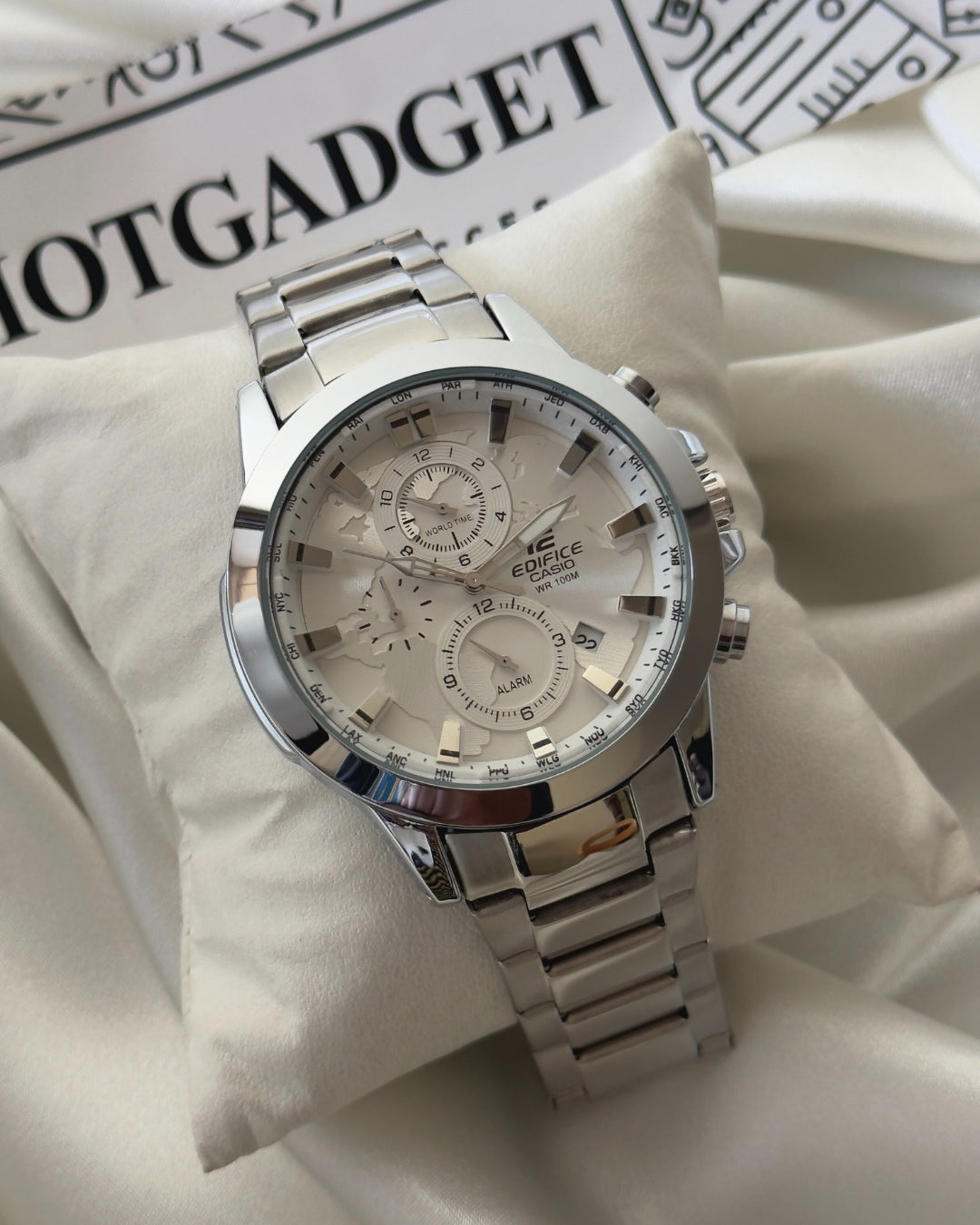 The Edifice Metal Chronograph Watch seamlessly merges style and precision. With a sleek metal construction, this timepiece exudes a modern and sophisticated vibe.