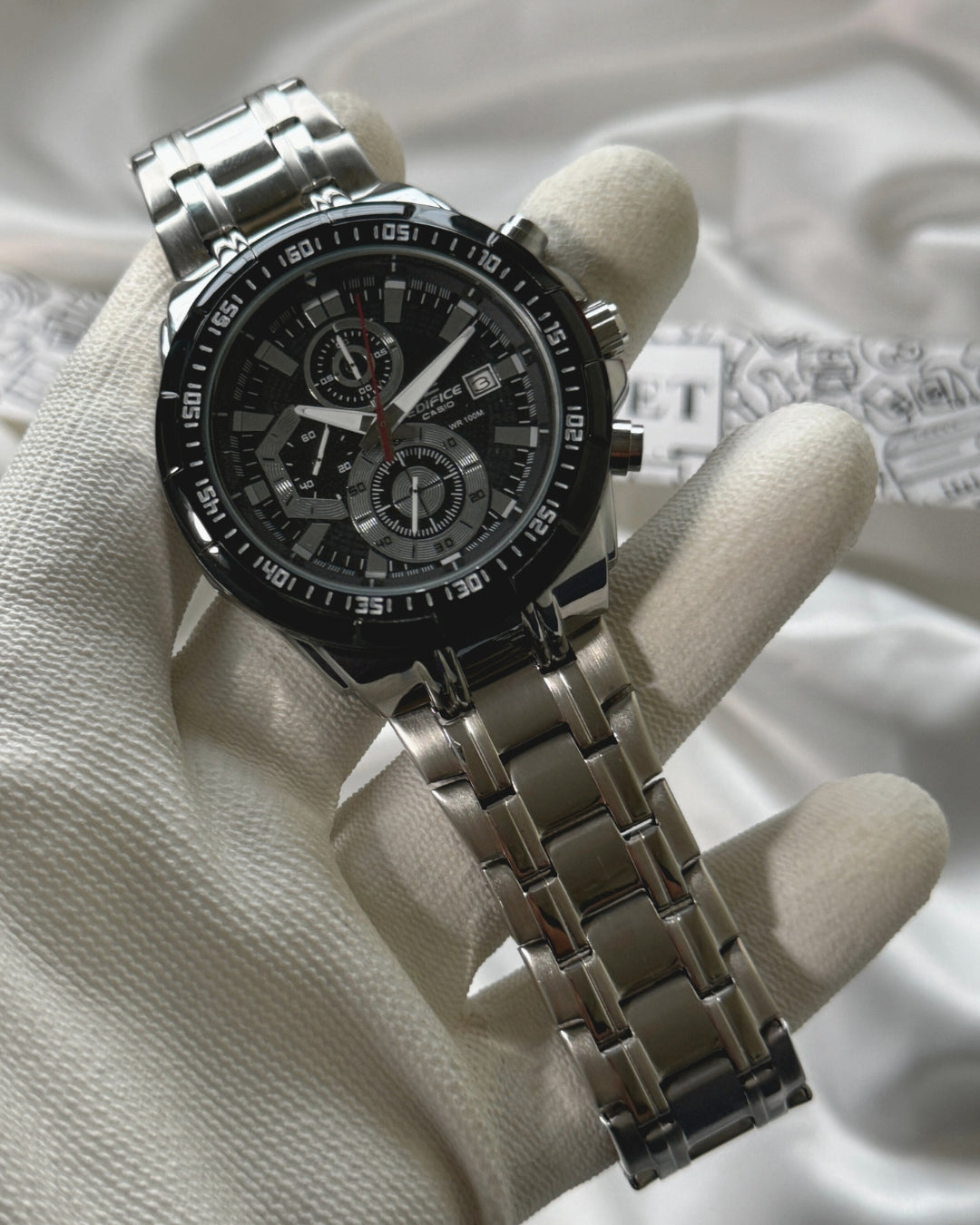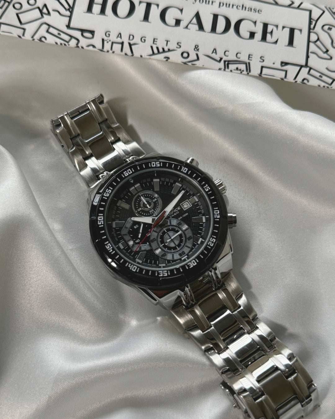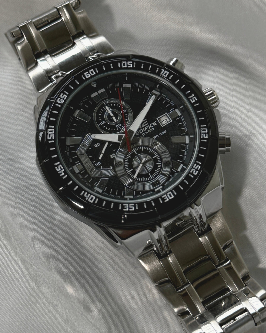 The Edifice Metal Chronograph Watch seamlessly merges style and precision. With a sleek metal construction, this timepiece exudes a modern and sophisticated vibe.