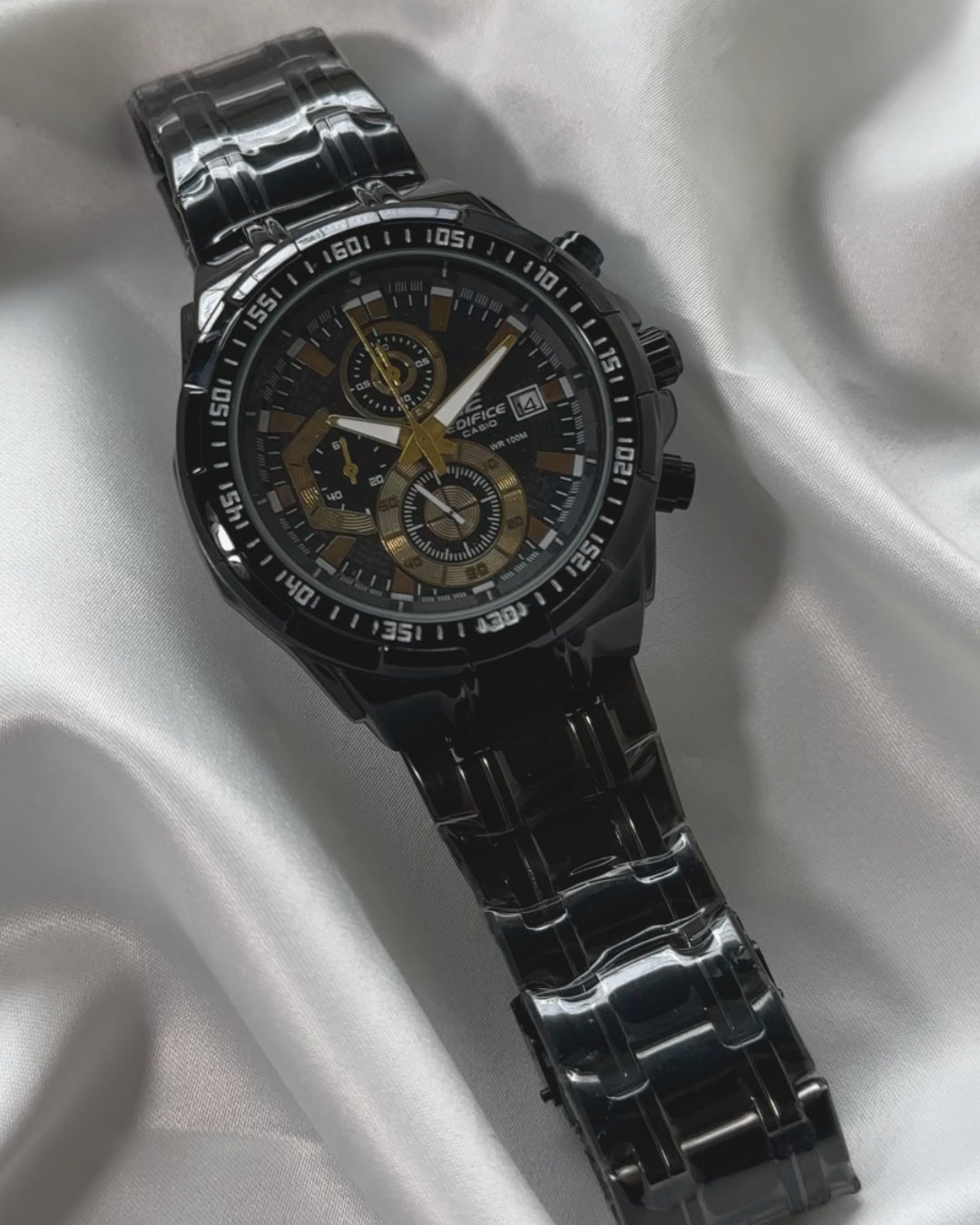The Edifice Metal Chronograph Watch seamlessly merges style and precision. With a sleek metal construction, this timepiece exudes a modern and sophisticated vibe.