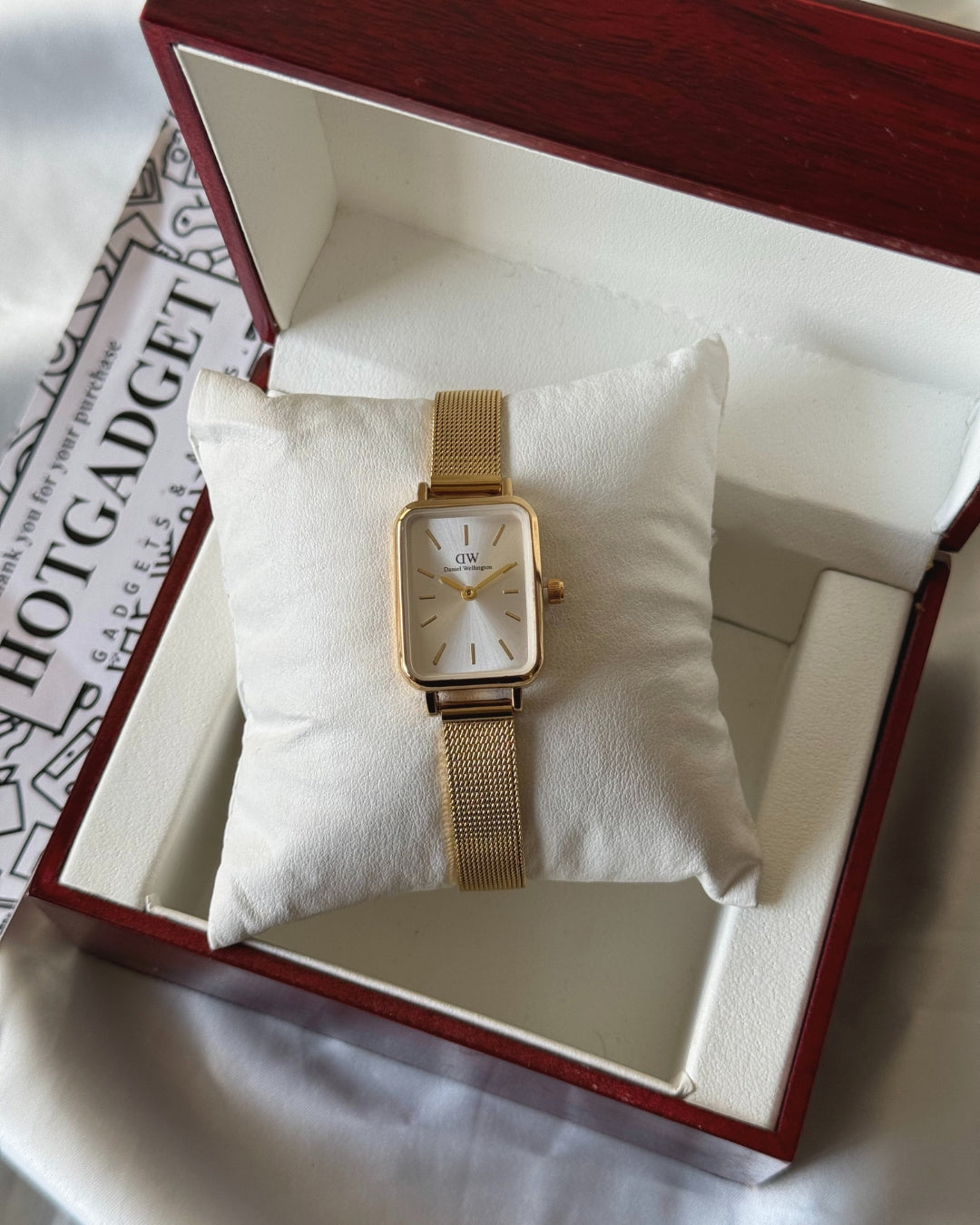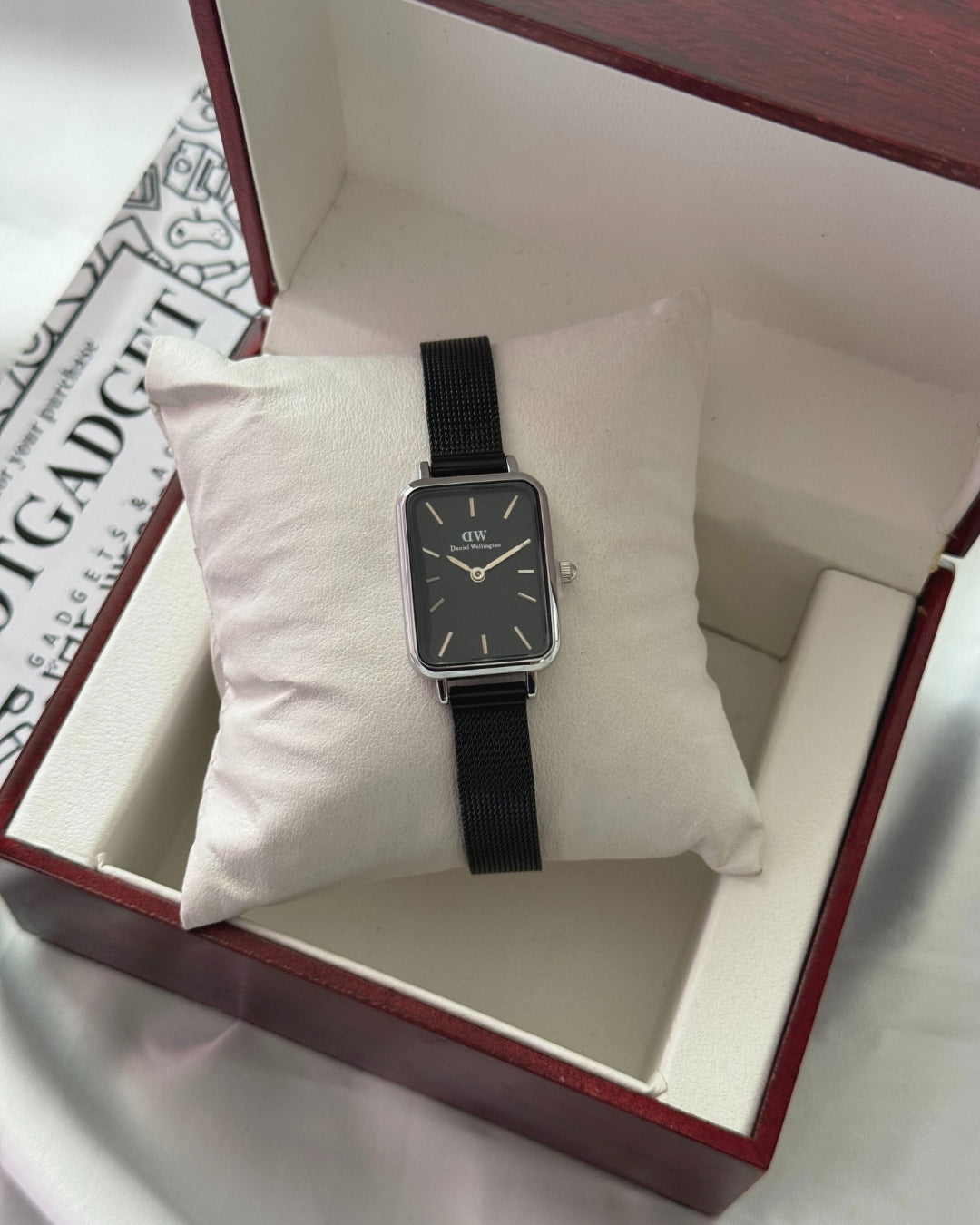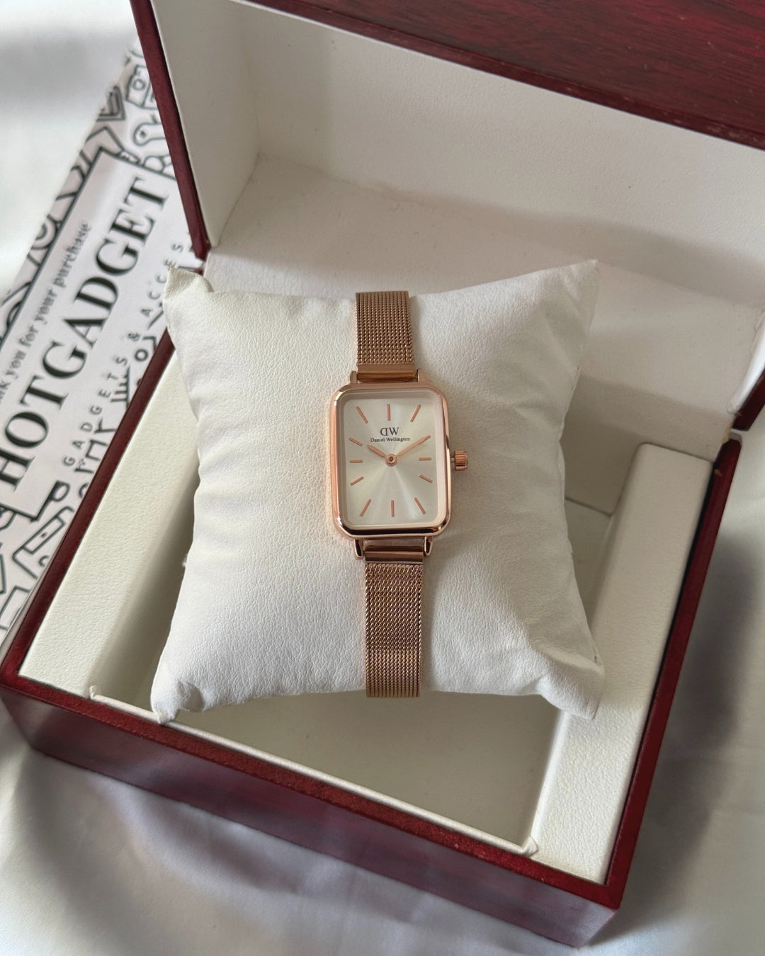 This DW Quadro Female analog watch offers accurate timekeeping and a sleek, classic design.