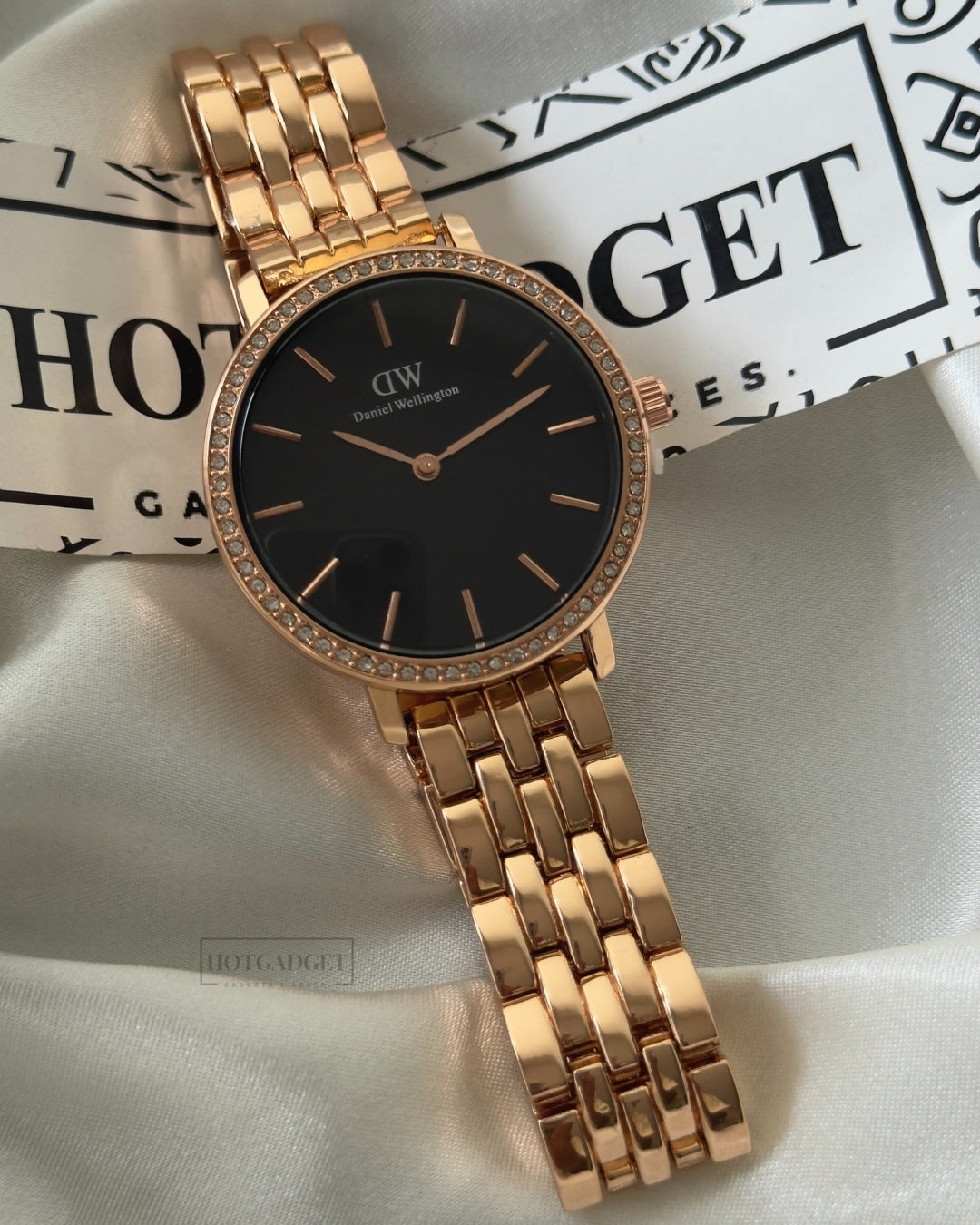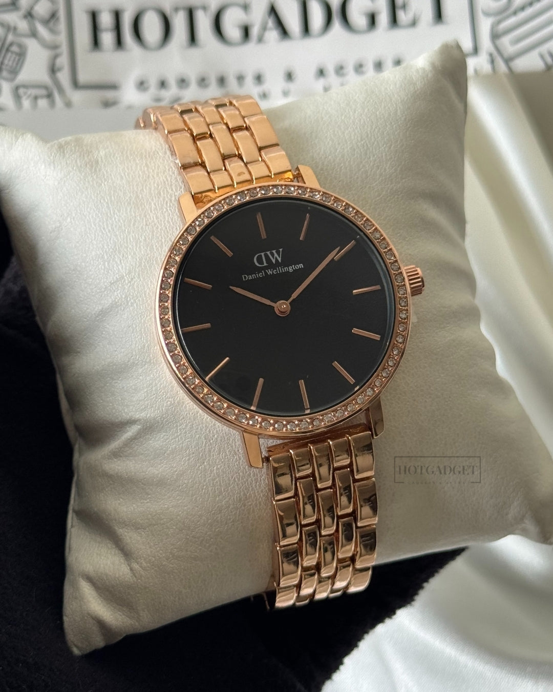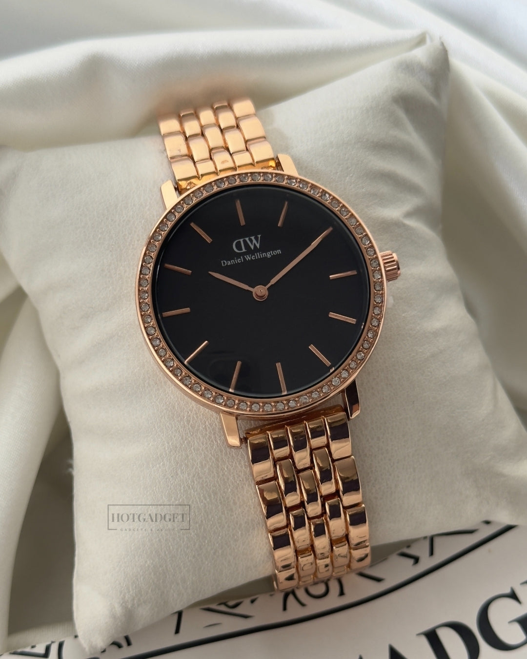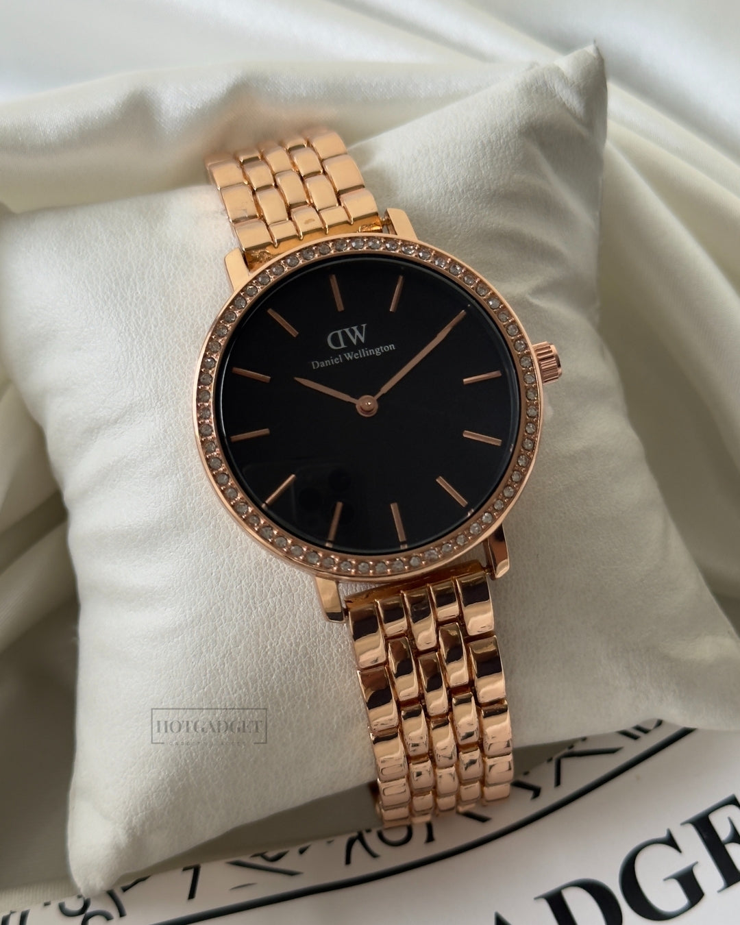 This DW Petite Female analog watch offers accurate timekeeping and a sleek, classic design.