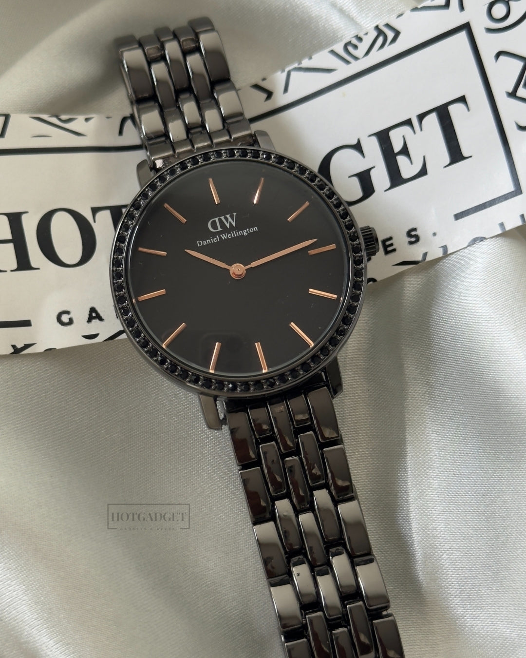 This DW Petite Female analog watch offers accurate timekeeping and a sleek, classic design.