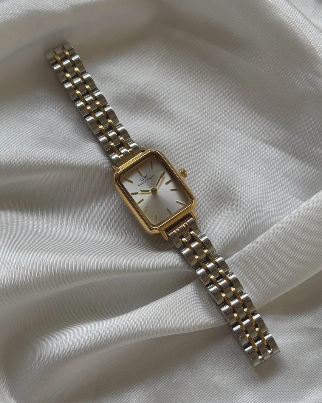 This DW Quadro Female analog watch offers accurate timekeeping and a sleek, classic design.
