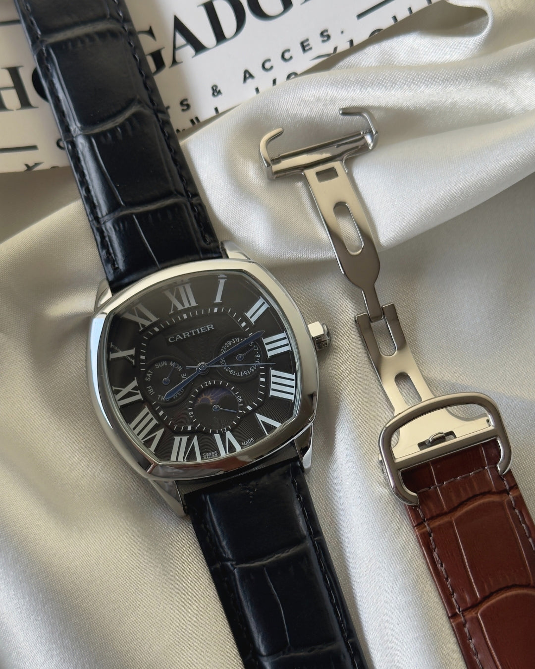 Experience timeless elegance with the Cartier-Drive Moon watch. This expertly crafted timepiece effortlessly combines classic design with modern technology.Β