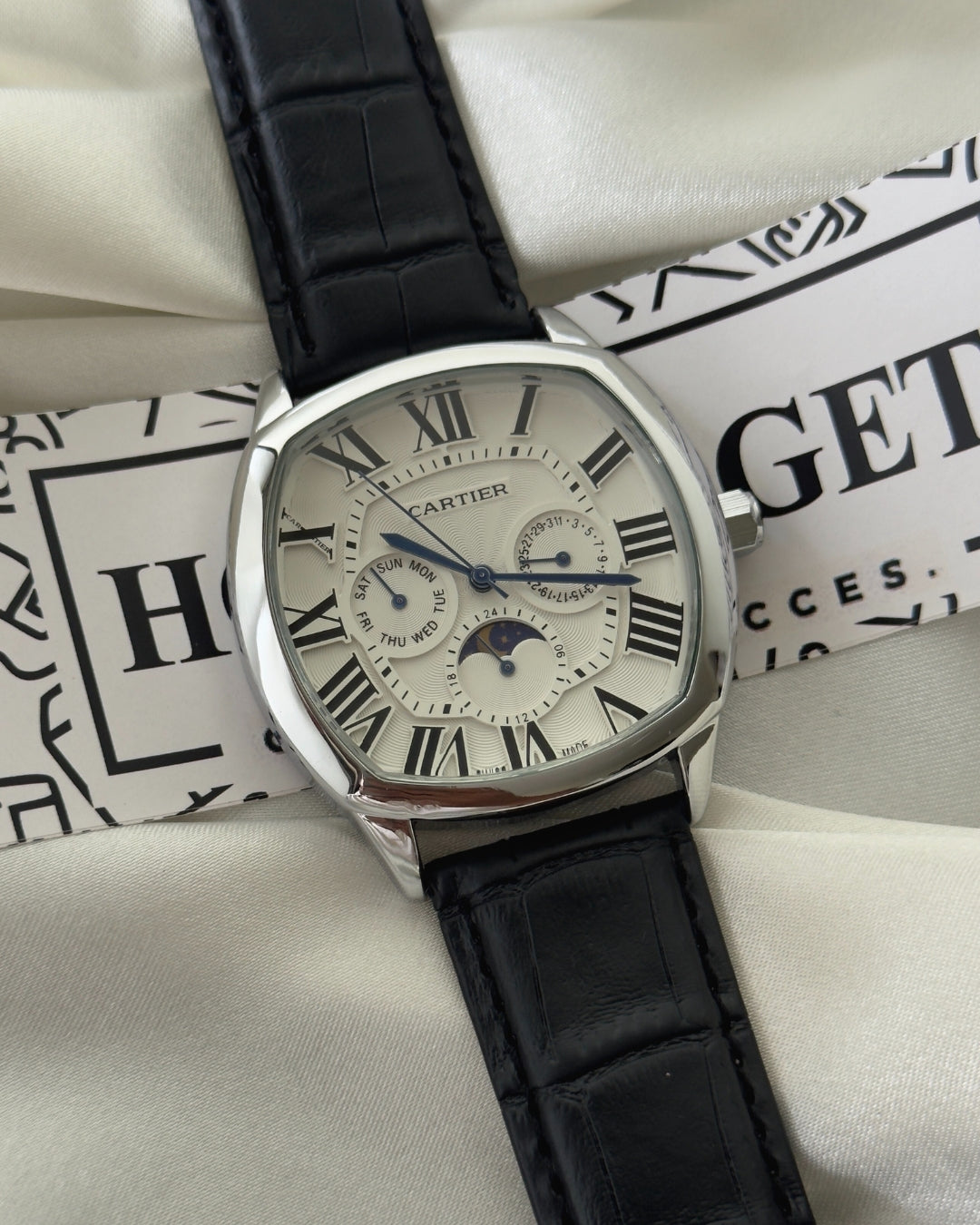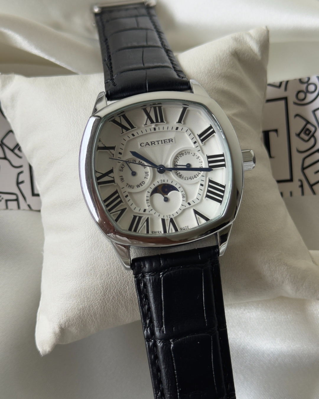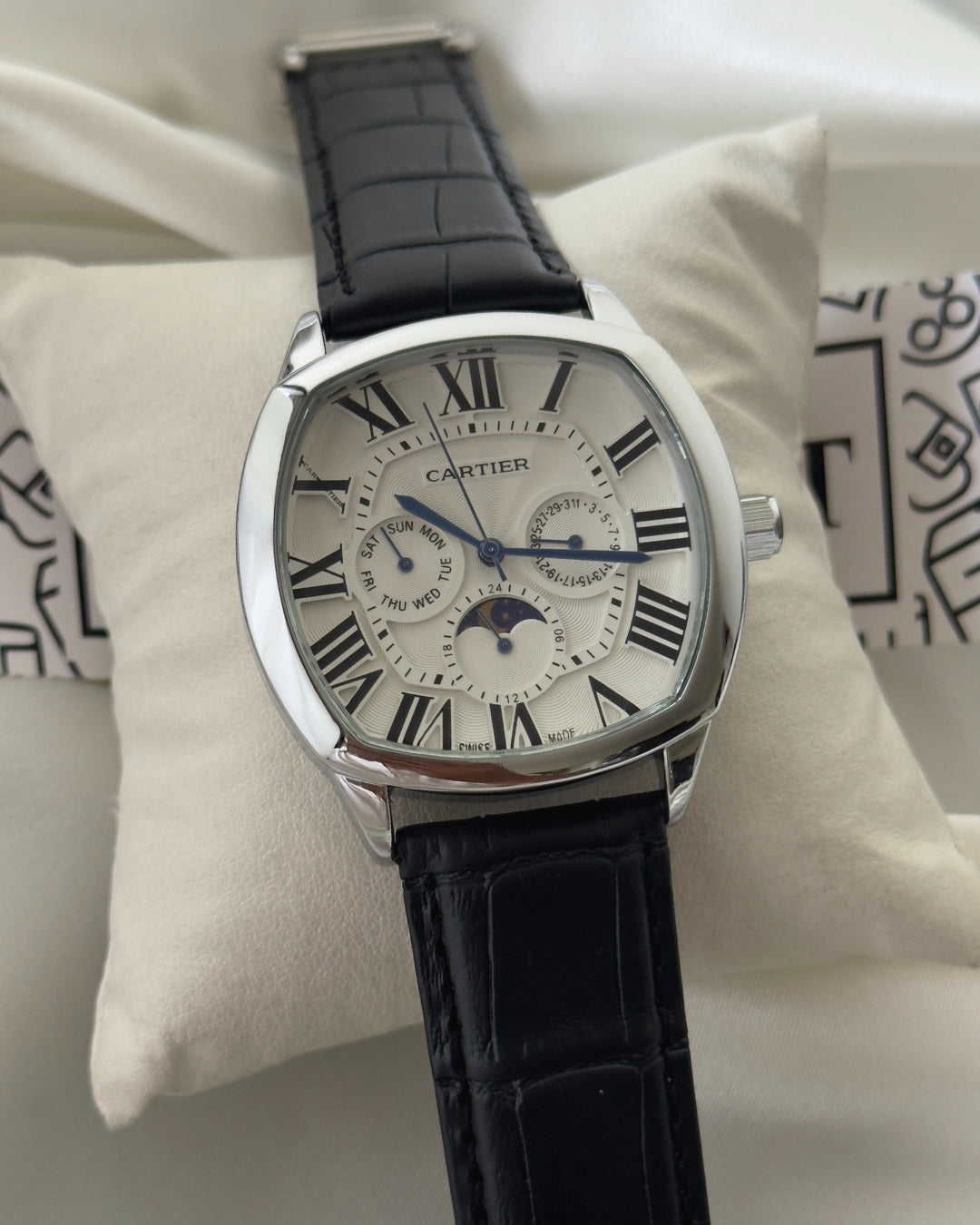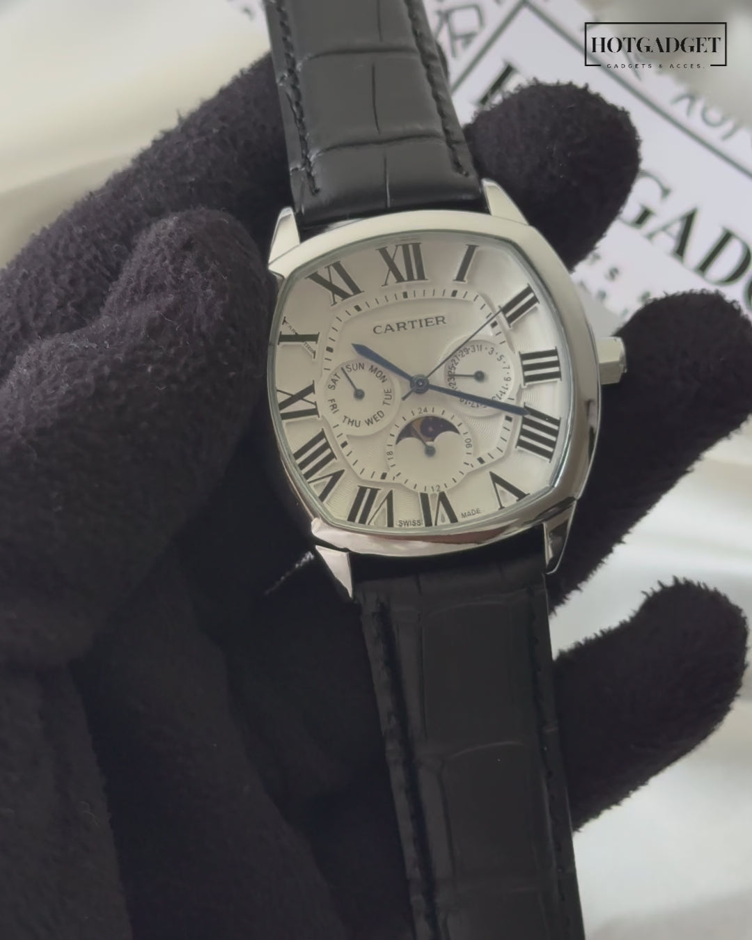 Experience timeless elegance with the Cartier-Drive Moon watch. This expertly crafted timepiece effortlessly combines classic design with modern technology.Β