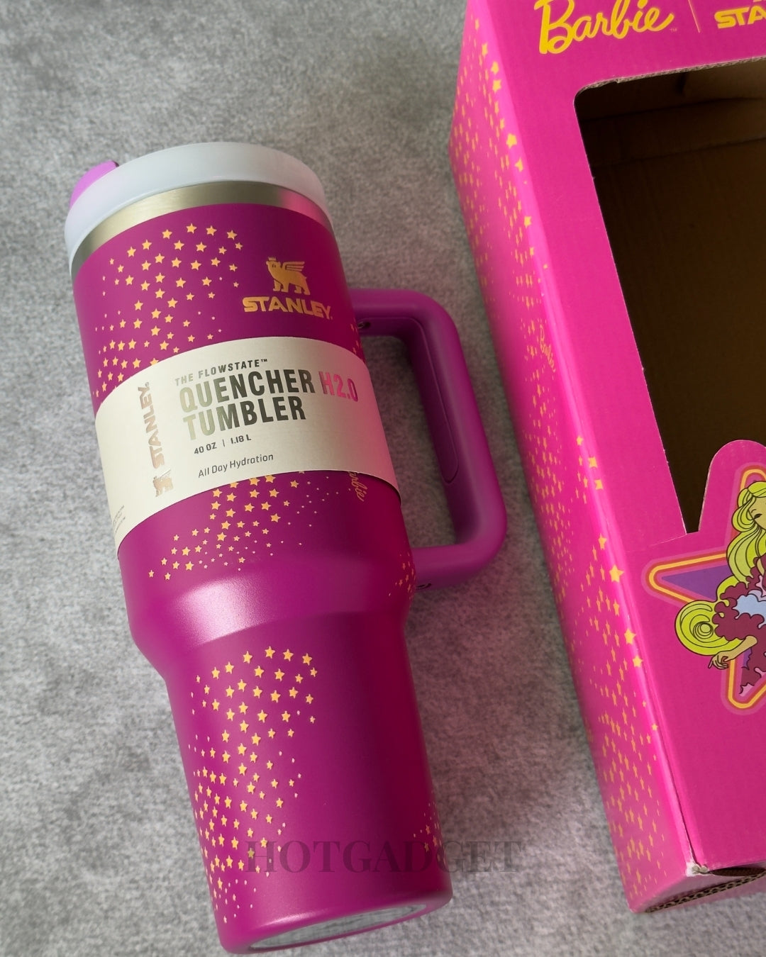 The Quencher H.0 Barbie Tumbler delivers exceptional all-day hydration with its 40 oz (1.18L) capacity. Its innovative triple-position lid allows for straw sipping, wide-mouth drinking, or spill-proof coverage.