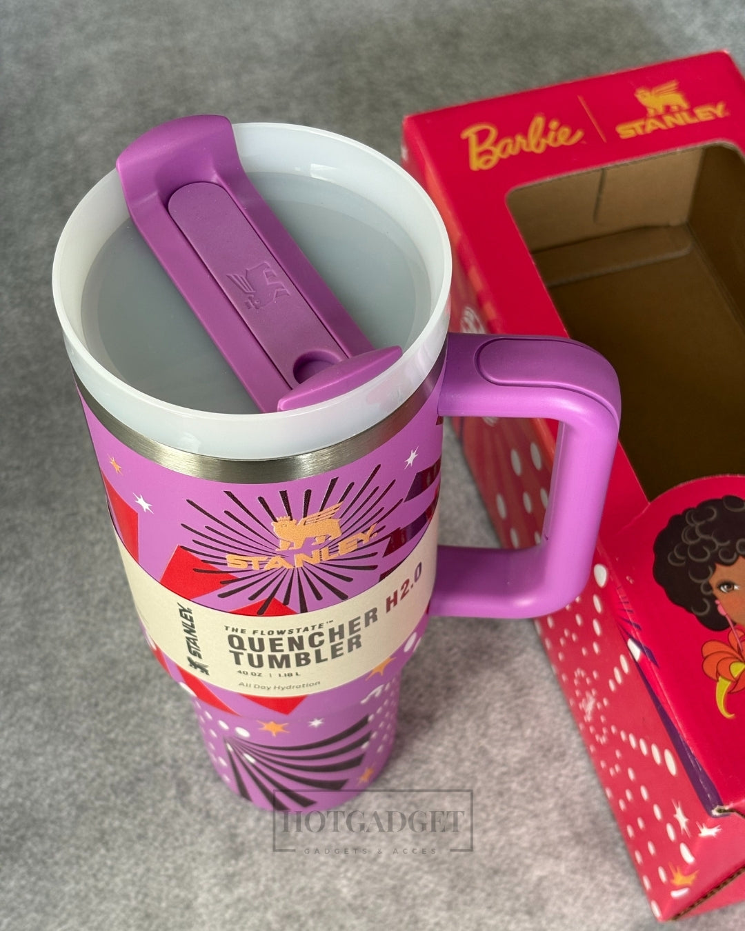 The Quencher H.0 Barbie Tumbler delivers exceptional all-day hydration with its 40 oz (1.18L) capacity. Its innovative triple-position lid allows for straw sipping, wide-mouth drinking, or spill-proof coverage.