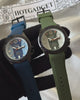 This EIKO-5 Sports Chronograph Watch has a blue dial and black bezel, adding a pop of color to its sleek and sporty design.