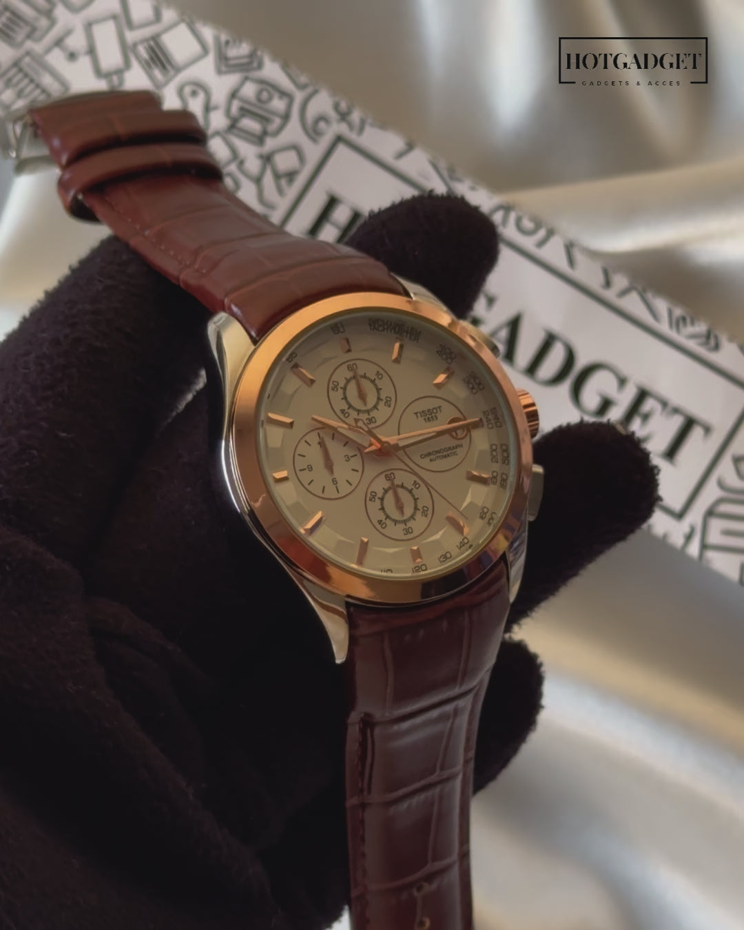 This sophisticated timepiece features a chronograph function, allowing you to accurately track and measure time with ease.