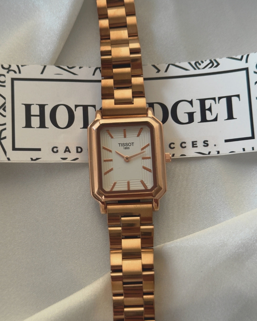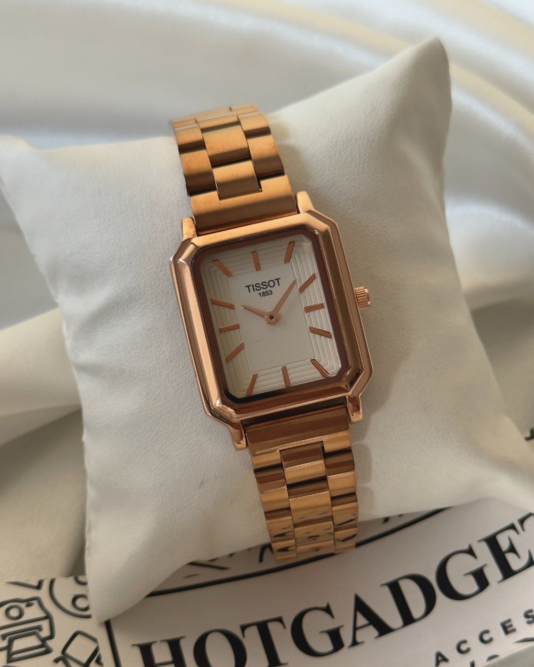 This stunning piece conveys the very essence of class with its discrete yet absolutely gorgeous mini-size and feminine rectangle case.