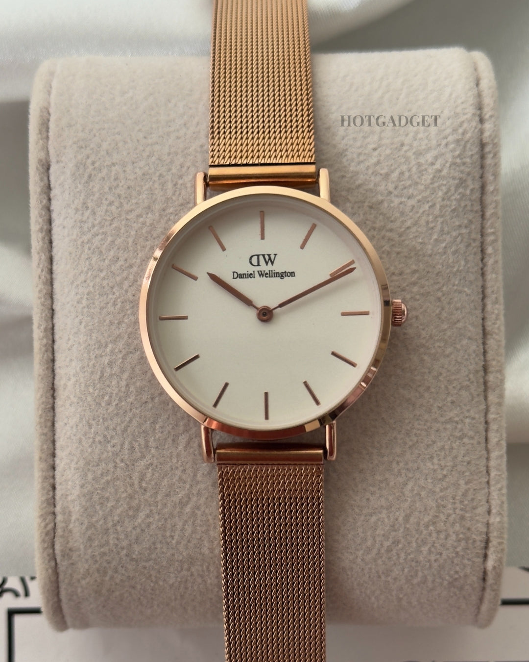 This DW Petite Female analog watch offers accurate timekeeping and a sleek, classic design.