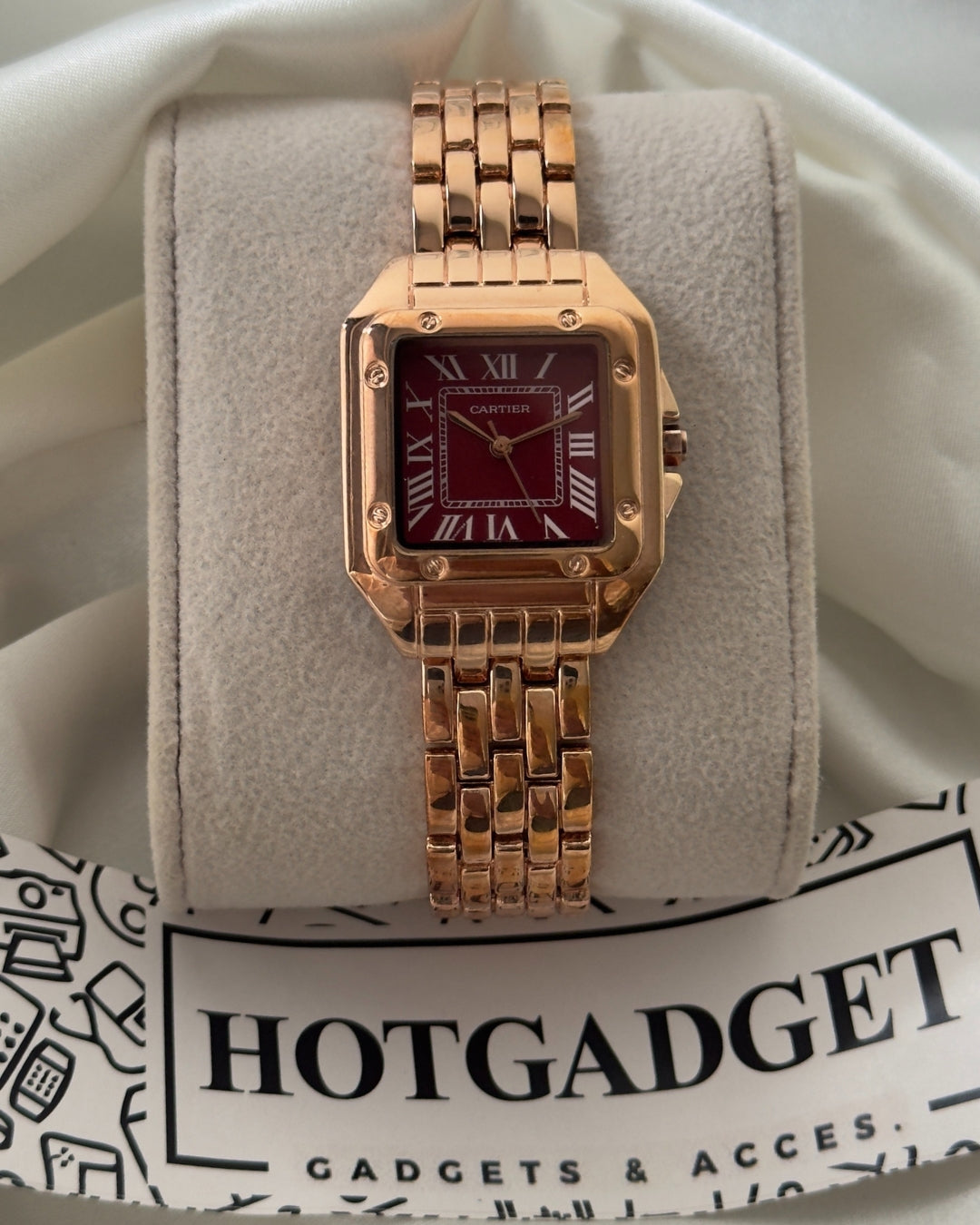 Sleek and sophisticated analog watch. Its elegant design exudes timeless charm and providing a luxurious touch to any outfit.