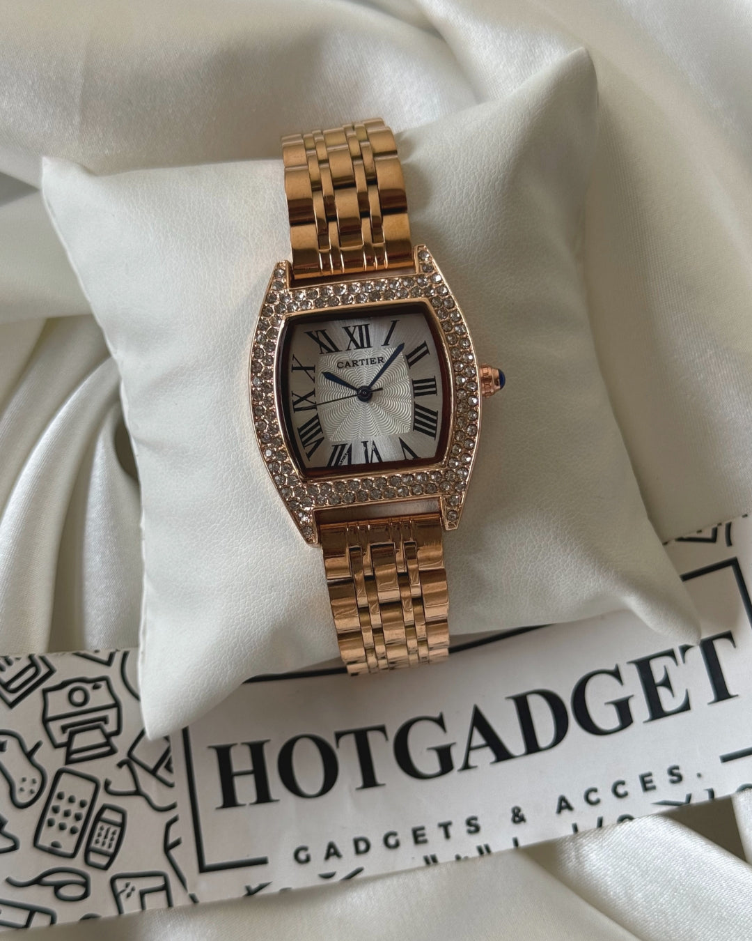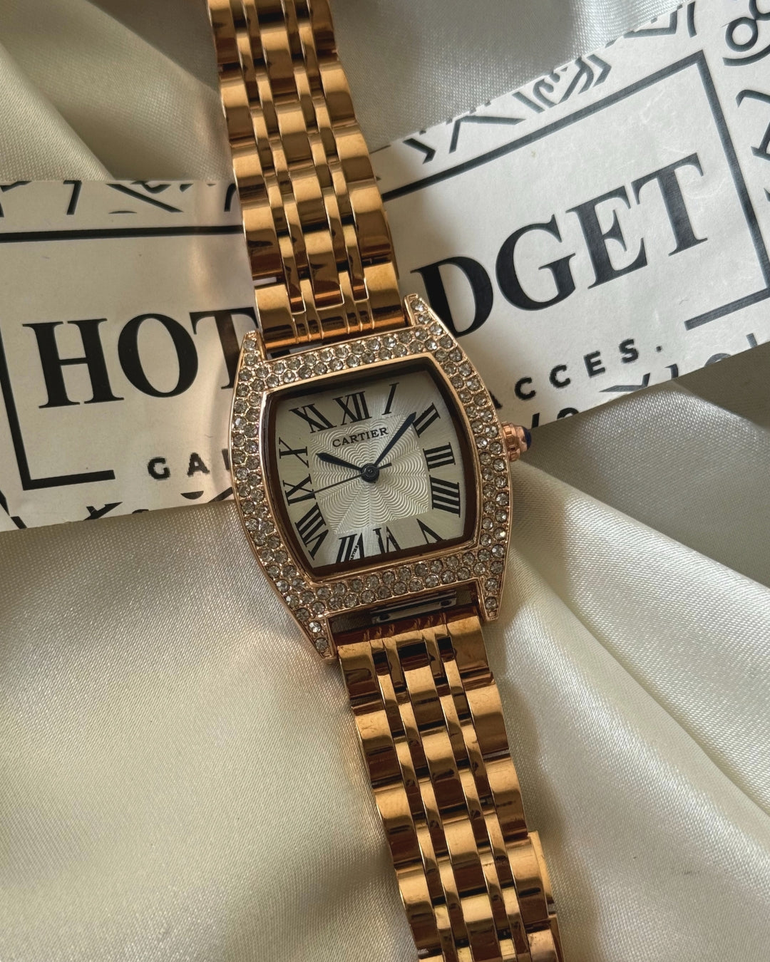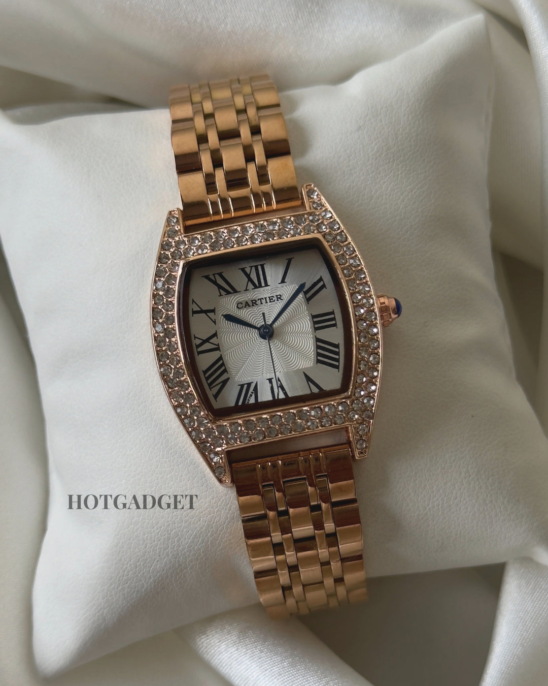 A sleek and sophisticated analog watch featuring diamond embellishments, with an elegant design that exudes timeless charm and adds a luxurious touch to every outfit.