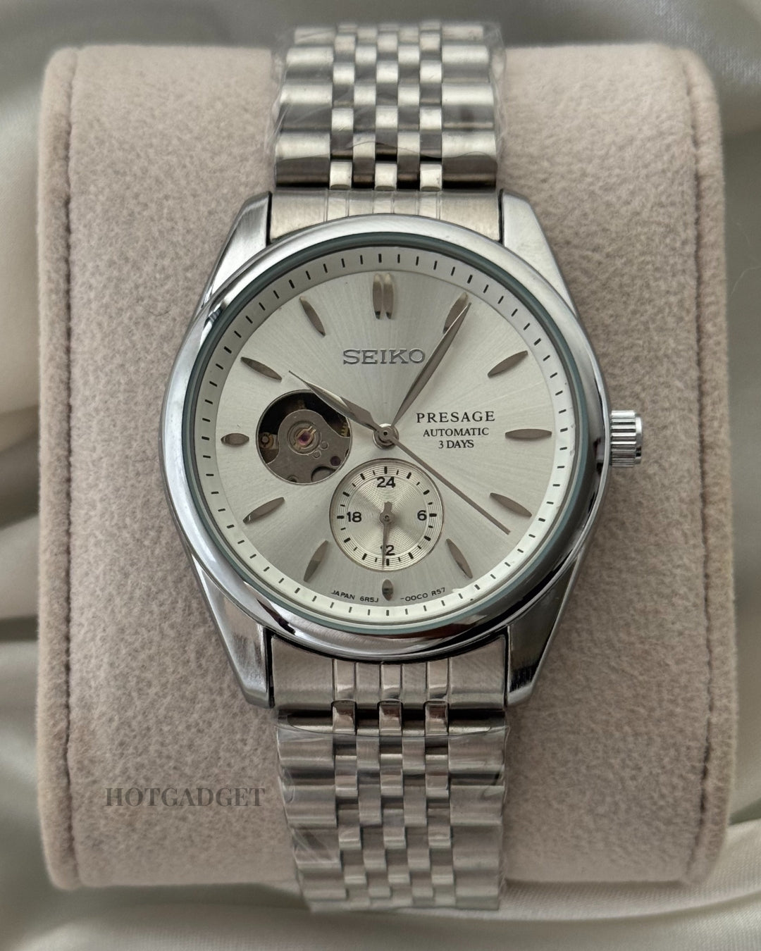 Its self-winding mechanism eliminates the need for batteries or manual winding. Enjoy the convenience and reliability of a watch that never stops, always keeping you on schedule.
