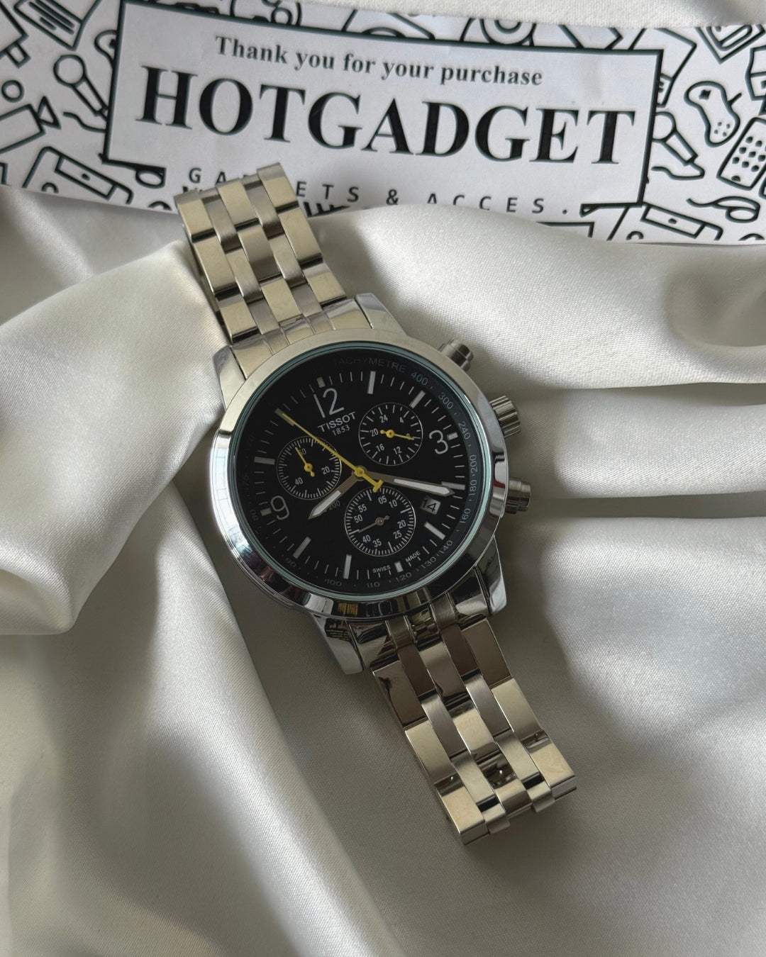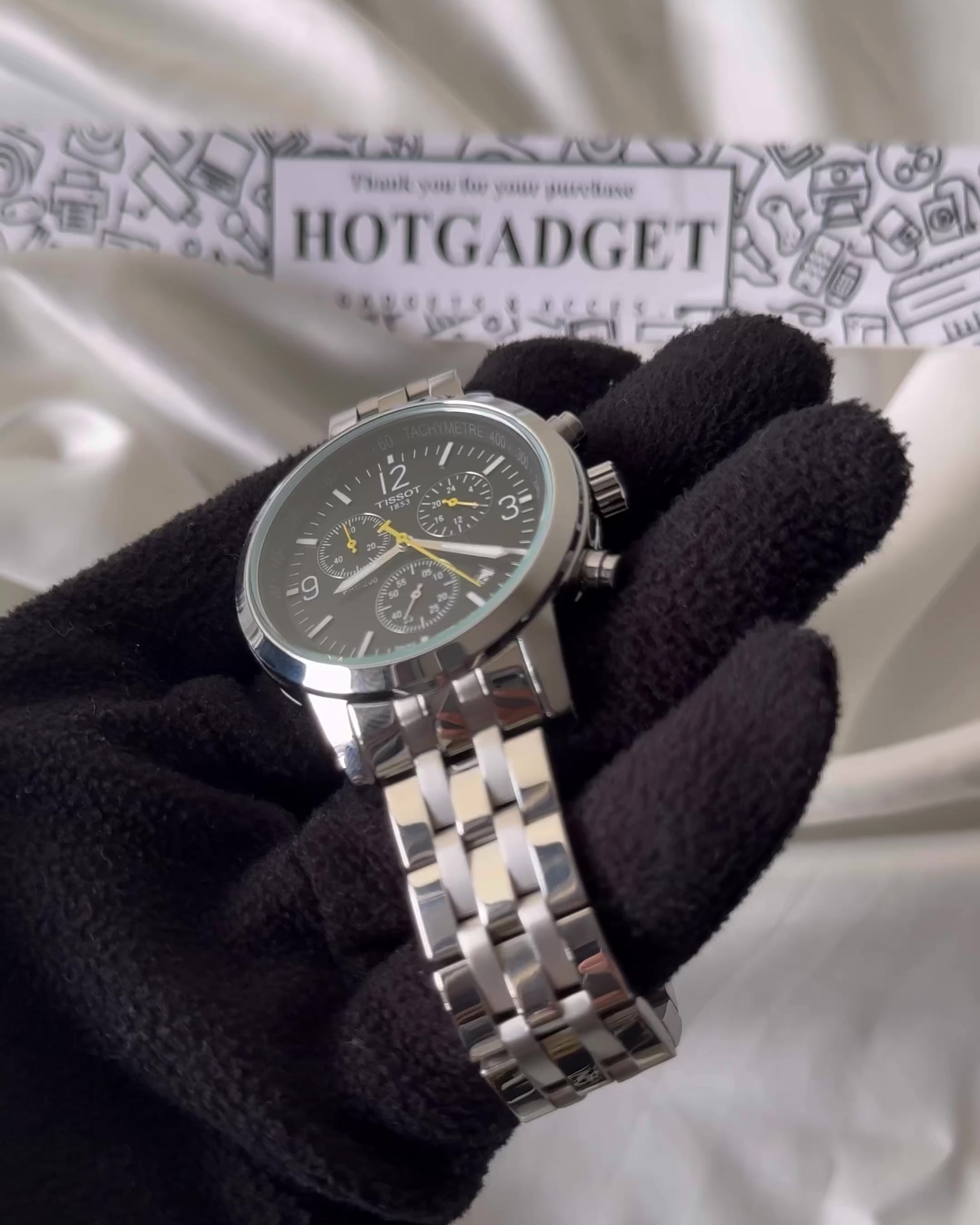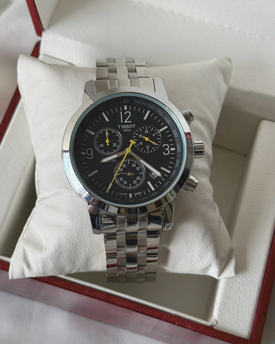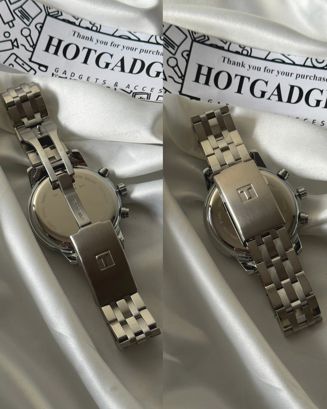 This sophisticated timepiece features a chronograph function, allowing you to track and measure time with ease accurately.
