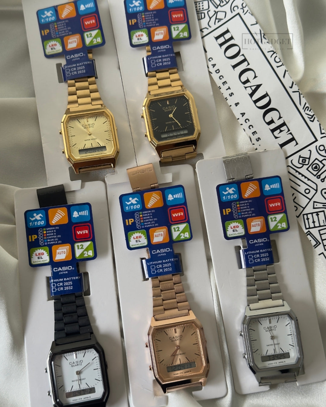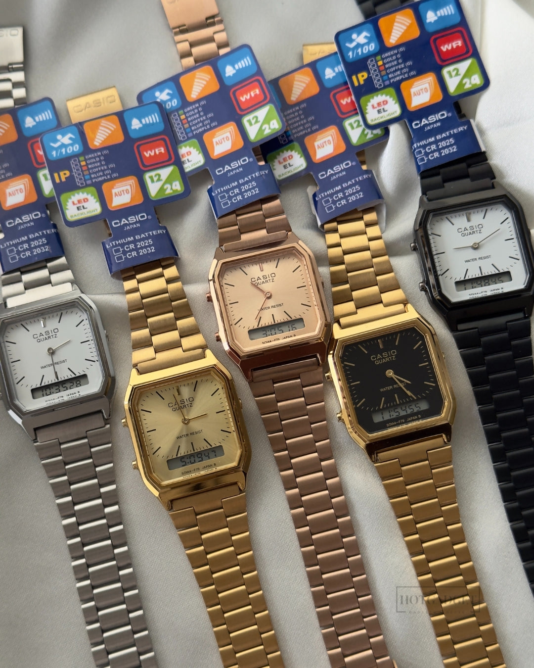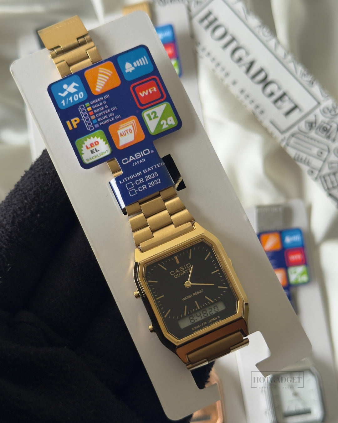 Effectively combining functionality and modern-day style, this analog-digital watch from the Vintage Series collection by Casio is a must-have timepiece.